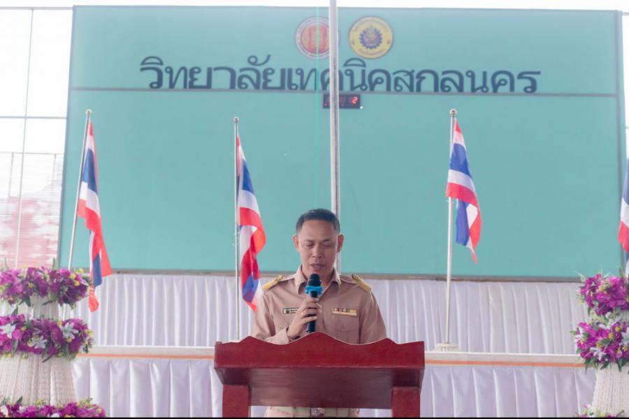 วันพฤหัสบดี ที่ 28 กันยายน พ.ศ.2566 นายวิชา อาญาเมือง ผู้อำนวยการวิทยาลัยเทคนิคสกลนคร เป็นประธานในพิธีเปิดกิจกรรมเนื่องในวันพระราชทานธงชาติไทย (Thai National Flag Day) ประจำปี 2566 เพื่อเป็นการสร้างความภูมิใจของคนในชาติและเป็นการน้อมรำลึกในพระมหากรุณาธิคุณพระบาทสมเด็จพระมงกุฎเกล้าเจ้าอยู่หัว ที่ทรงพระราชทานธงไตรรงค์เป็นธงชาติไทย ในการนี้มี ฝ่ายบริหาร ครู บุคลากรทางการศึกษา เข้าร่วมกิจกรรมดังกล่าว ณ โดมอเนกประสงค์ วิทยาลัยเทคนิคสกลนคร S:0