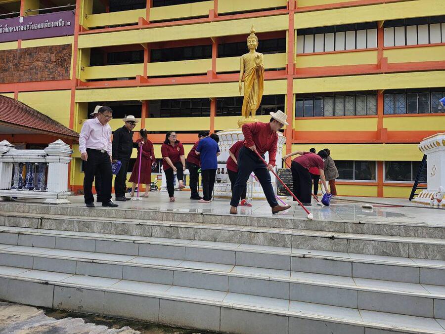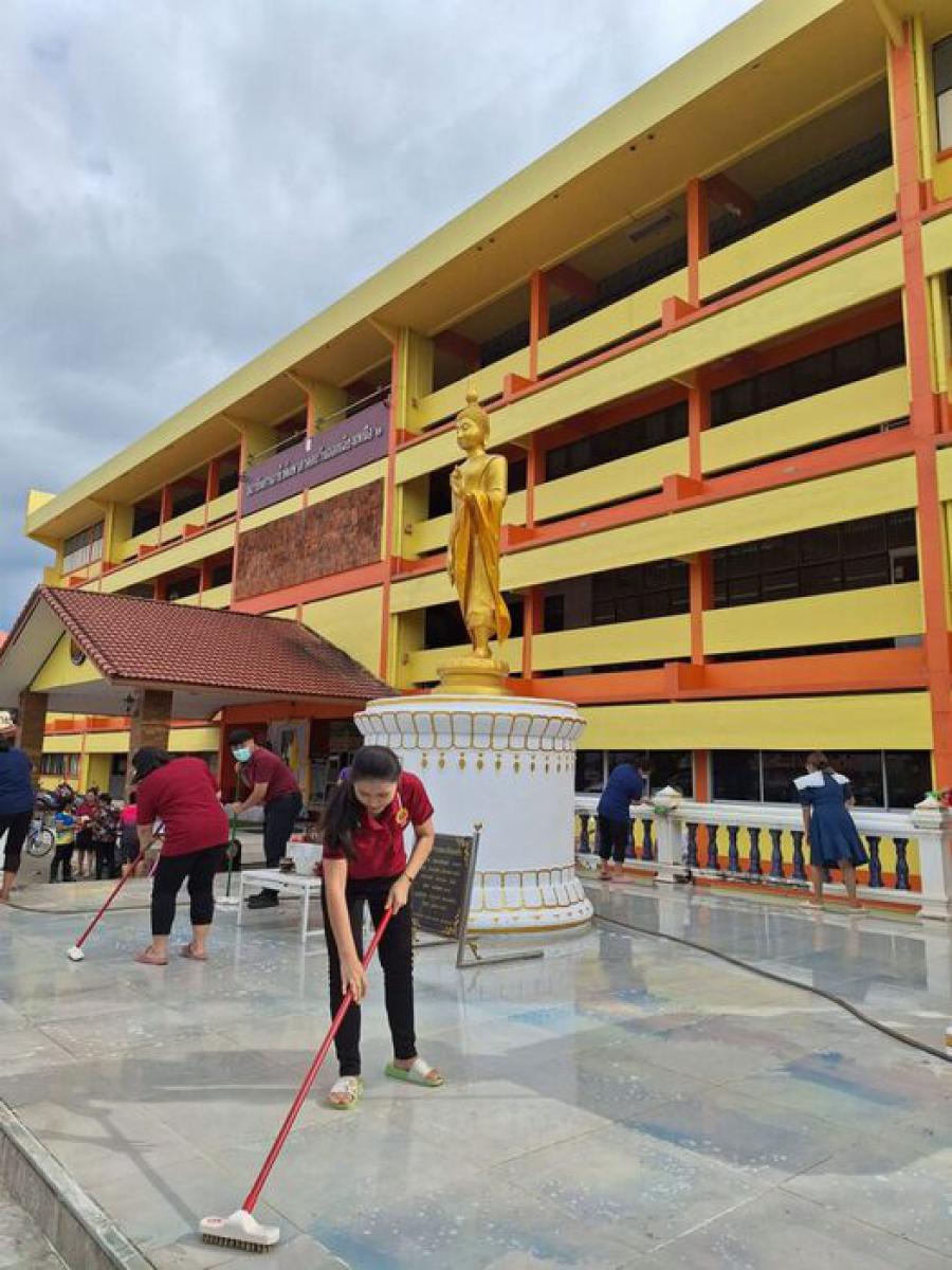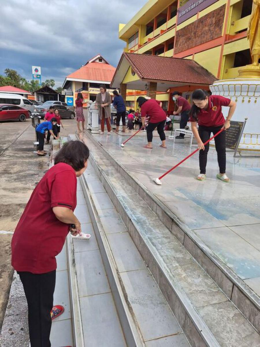 10 ตค. 66 ร่่วมด้วยช่วยกันขัดล้างทำความสะอาดบริเวณลานประดิษฐานองค์พระ