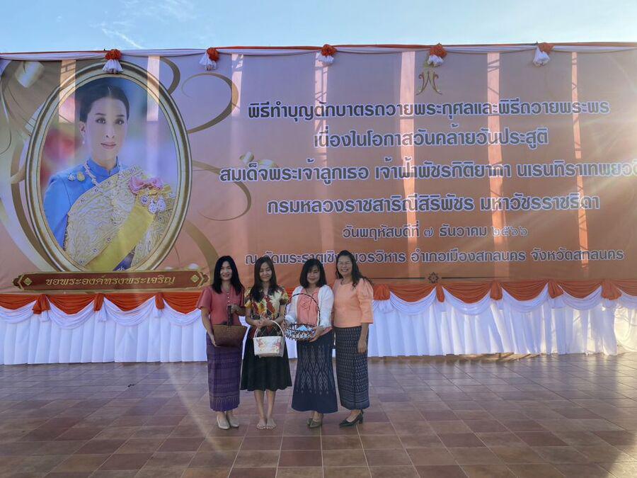 วันพฤหัสบดีที่ 7 ธันวาคม พ.ศ. 2566 นายศราวุธ วงศ์พงษ์คำ รองผู้อำนวยการฝ่ายวิชาการ และคณะครู เจ้าหน้าที่ เข้าร่วมพิธีทำบุญตักบาตรถวายเป็นพระราชกุศลและพิธีถวายพระพร เนื่องในโอกาสวันคล้ายวันประสูติ สมเด็จพระเจ้าลูกเธอเจ้าฟ้าพัชรกิติยาภา นเรนทราเทพยาวดี กรมหลวงราชสาริณีสิริพัชร มหาวัชรราชธิดา ณ วัดพระธาตุเชิงชุมวรวิหาร อำเภอเมือง จังหวัดสกลนคร S:0